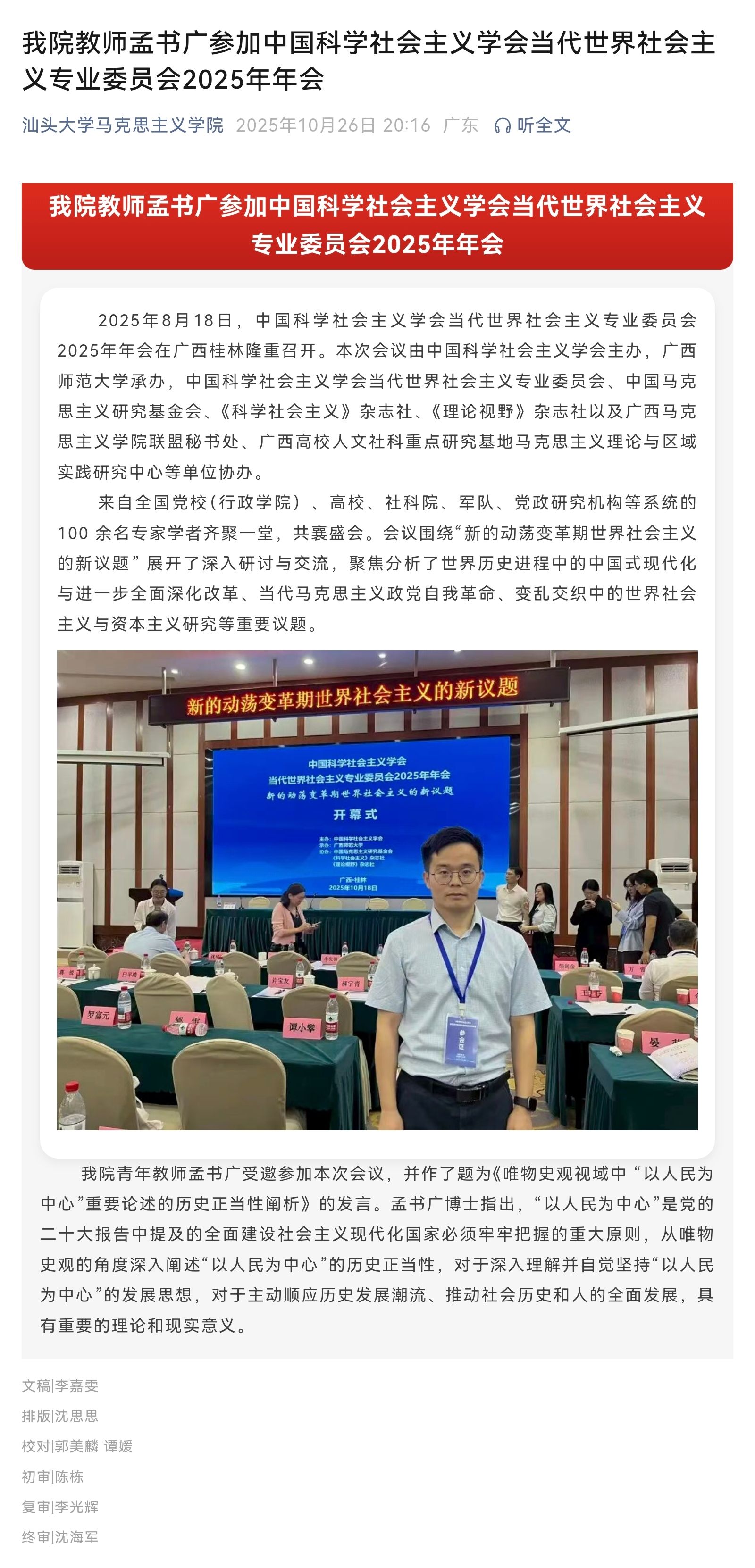 我院教师孟书广参加中国科学社会主义学会当代世界社会主义专业委员会2025年年会