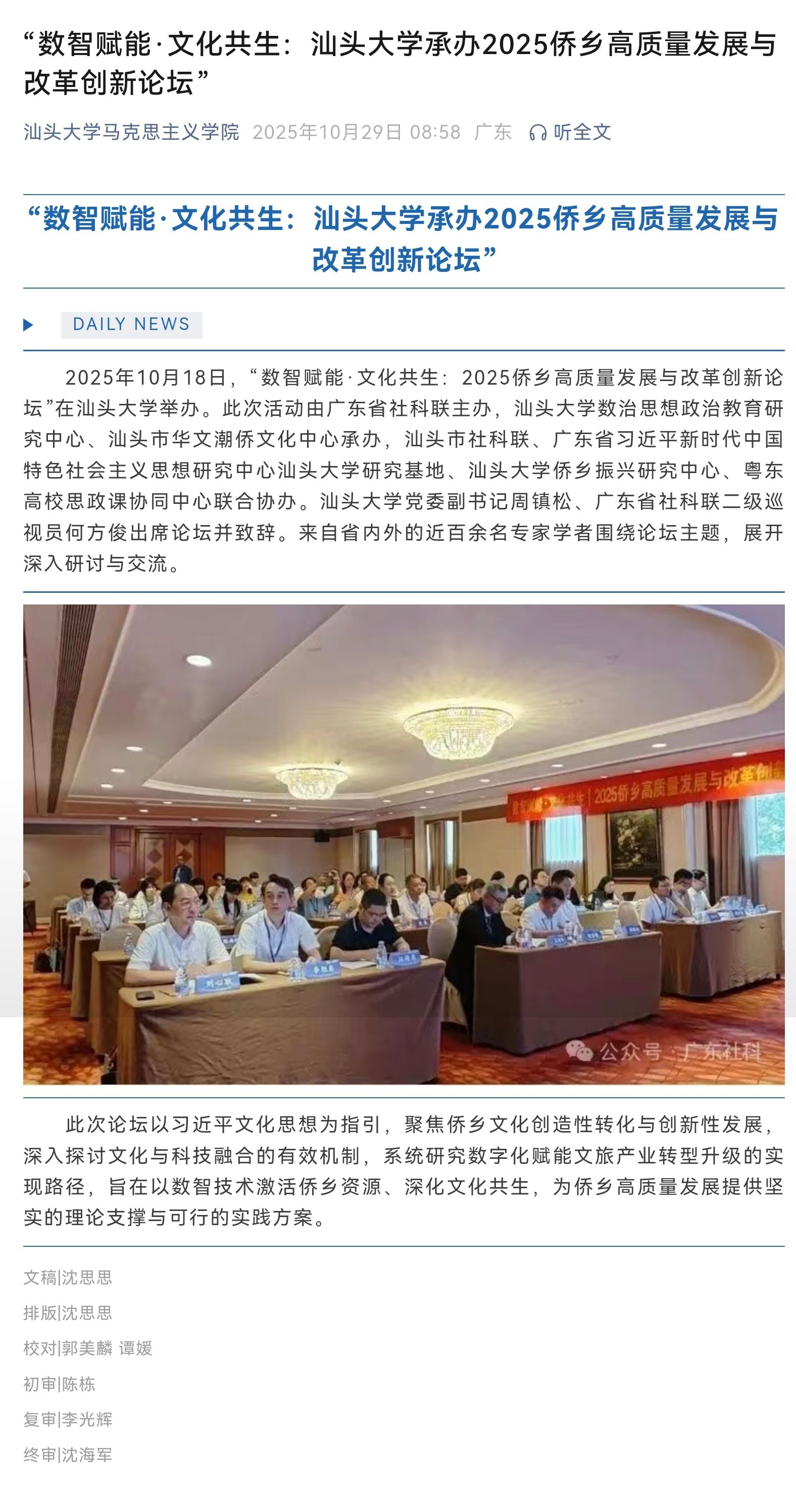 “数智赋能·文化共生:汕头大学承办2025侨乡高质量发展与改革创新论坛”