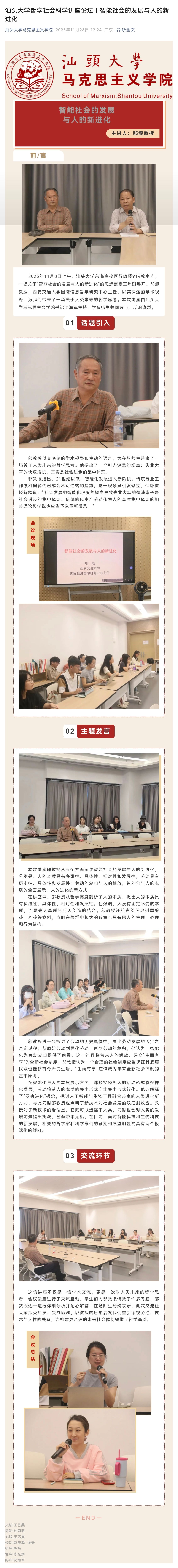 汕头大学哲学社会科学讲座论坛|智能社会的发展与人的新进化