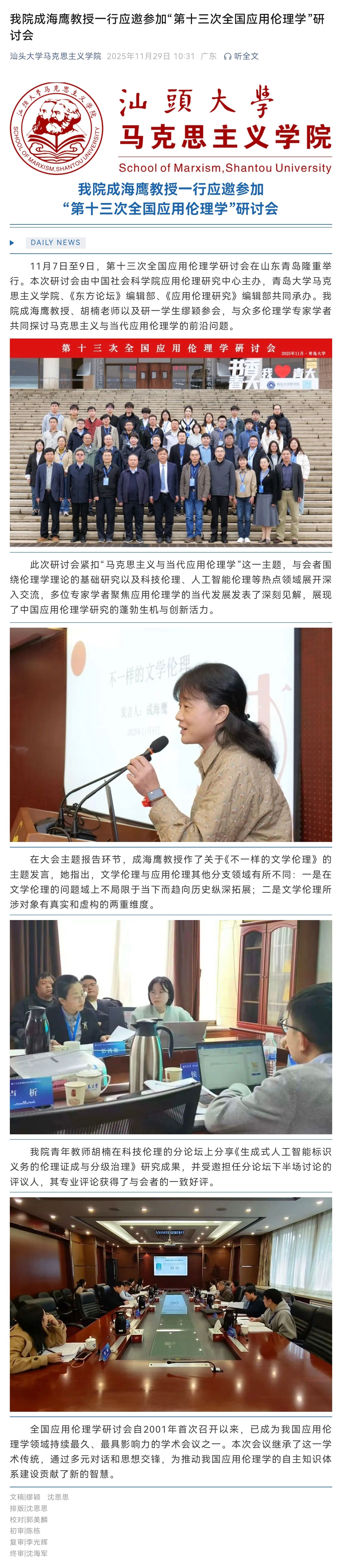 我院成海鹰教授一行应邀参加“第十三次全国应用伦理学”研讨会